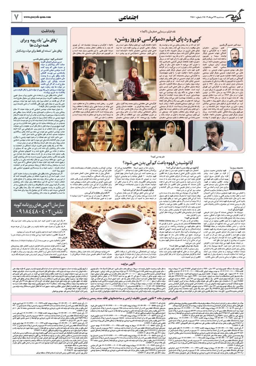 حالا كه در يك رقابت جدى اكثريت شركت كنندگان در انتخابات به جناب دكتر پزشكيان رأى داده اند و اين در حالى بود كه بسيارى از مساجد از حالت بى طرفى خارج شده و به كانونهاى تبليغاتى جناح رقيب تبديل شده بودند و هر بار كه به مسجد جهت نماز جماعت مى رفتيم بايد ناگزير سخنان توهين آميزى را نسبت به دكتر پزشكيان گوش مى داديم ، مع ذالك مردم از بين دو تفكر ارائه شده يكى را بر ديگرى ترجيح دادند، طبعا بايد اجازه دهند تا ايشان اهدافى را كه معين كرده است به سرانجام برساند تا بلكه آن پنجاه درصدى هم كه در انتخابات شركت نكردند ، ترغيب شوند و به مردمسالارى جمهورى اسلامى باور عميق پيدا كنند.